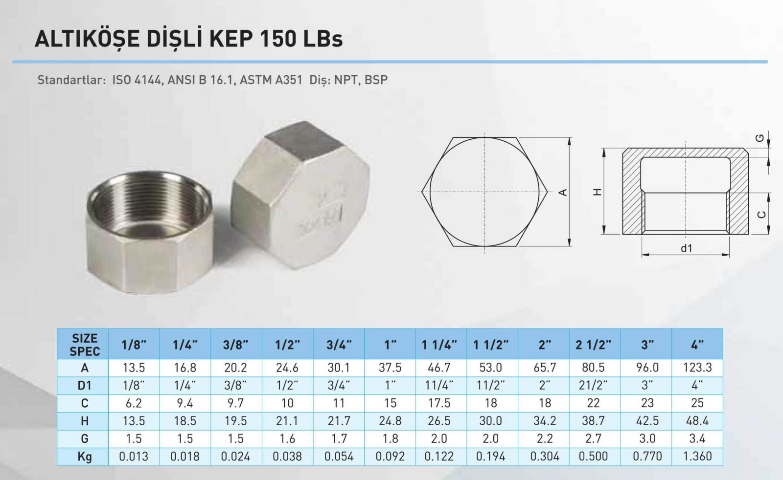 Paslanmaz iç dişli kör tapalar, hatların sonlandırılması için kullanılan içten dişli bağlantı elemanıdır. İç dişli kör tapalar ¼” – 4” arası ölçülerde stoklarımızda bulunmaktadır.